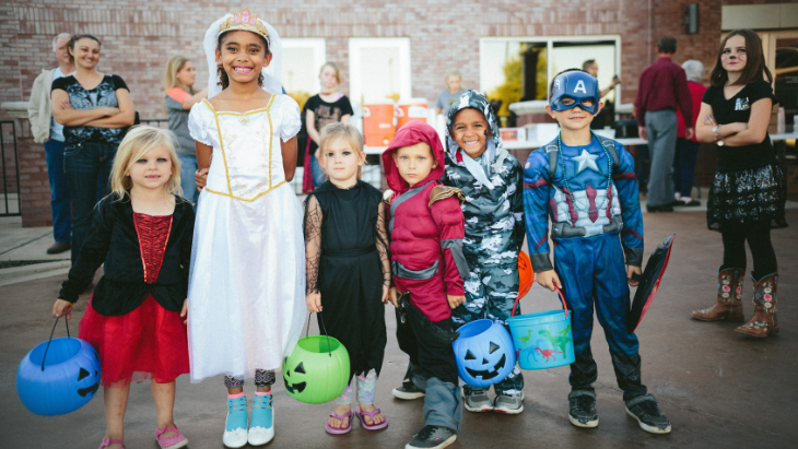 One of the best ways to experience trick-or-treating safely is to get together with other parents in your street/area. It’s also a great way of getting to know other local families. Have a list of who’s participating and plan your route. One parent should stay at home to welcome trick-or-treaters while the other escorts the group to each house on the list.