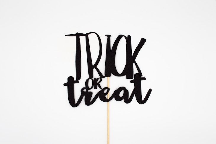 If you’re going to be out on the evening of 31 October but still want to spread the Halloween cheer, leave your treats in a container outside your front door with a note inviting visitors to help themselves…to one not all!