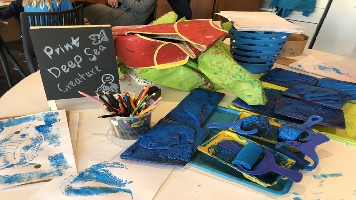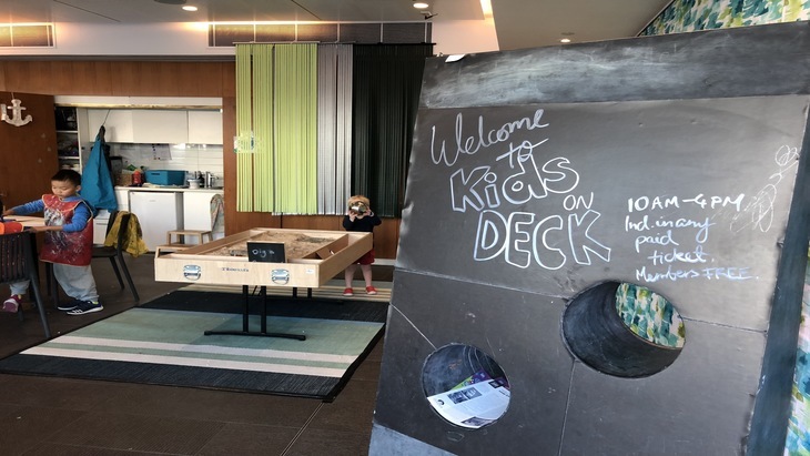 Outside in the Kids on Deck play area, the museum have teamed with the ocean theme, offering Deep Sea Mystery Activities. Open daily with school holidays from 10am – 4pm (Sundays 11-3pm only during school term). We had the choice of fishing, digging in a shipwreck, screen printing a deep-sea creature or making a deep-sea octopus and/or submarine. We selected to make a purple submarine with gold windows that looks remarkably like a sail boat from Dubai. Kids on Deck is free with any paid museum ticket and free for members.