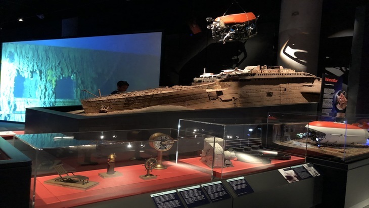 For most of us, the Titanic is of the most interest. The exhibition displays famous costumes and props from the movie, including the grand staircase cherub lamp, the engine telegraph and the “wearing ONLY this” Heart of the Ocean diamond. In fact, for a mere $100, you can buy your very own replicate from the museum shop! (very tempting….). There is of course, footage inside from the REAL Titanic wreck which I continually find enthralling. So much of the vessel still remains intact after all these years.