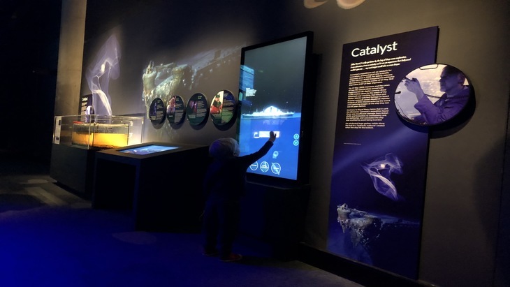 Visiting with my two young boys (4 & 2), this was really one for me as I enjoyed the connection to the movie and found the explorations fascinating. There are a few hands-on activities my eldest happily “dived” into (pun intended) like the replica DEEPSEA CHALLENGER; an Australian made steel pilot sphere that is capable of withstanding more than 1.25 tonnes per square centimetre of full ocean depth pressure and a touch screen showing how the ships came to be on the bottom of the ocean. Several screens show snippets of his documentaries covering the sea expeditions and the building of his specialist sea craft. We enjoyed the imagery of deep ocean creatures, too.
