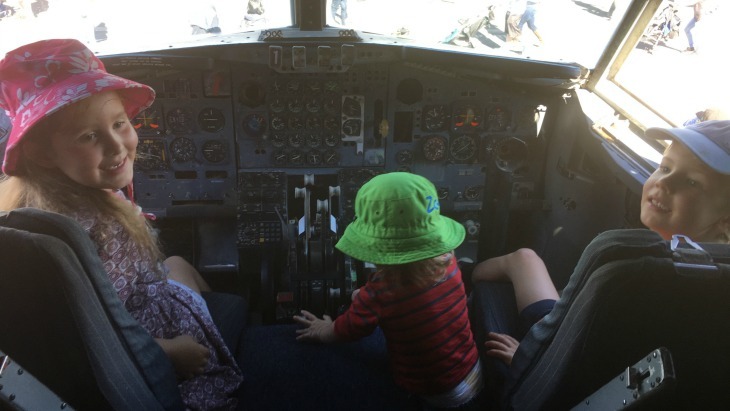 There is lots to see and do at the Air Show. The gates open from 9am – 5pm and the flying displays run from 10.30am – 4.30pm. The flying displays were magnificent. We saw beautiful acrobatic gliders, wild and windy helicopters, restored WWI planes, and vintage WWII aircraft simulating battles. But by far the most exciting aircraft were the RAAF F/A-18 Hornets! We had only just arrived at the show and were getting our bearings when the Hornets positively thundered into view. They were spectacular and LOUD – really loud! Whilst we had expected noise we were not quite prepared for the rush of the hornets flying past. Our 6-year-old explorer declared that he could “feel them in his chest”. The noise for most of the day wasn’t too bad but it might be worthwhile considering ear muffs or ear plugs for some children.