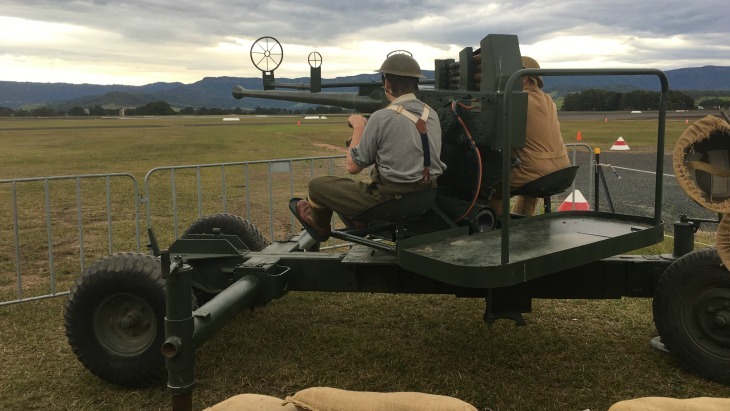 Towards the close of the day, we discovered a whole separate section on the southern side of the main runway where lots of smaller planes had parked. There was an excellent demonstration of WW1 army paraphernalia including a Jeep the kids could climb on, a large rotating gun that historically dressed figures were operating, and very entertaining “officers” demonstrating how to load and fire various rifles and handguns.