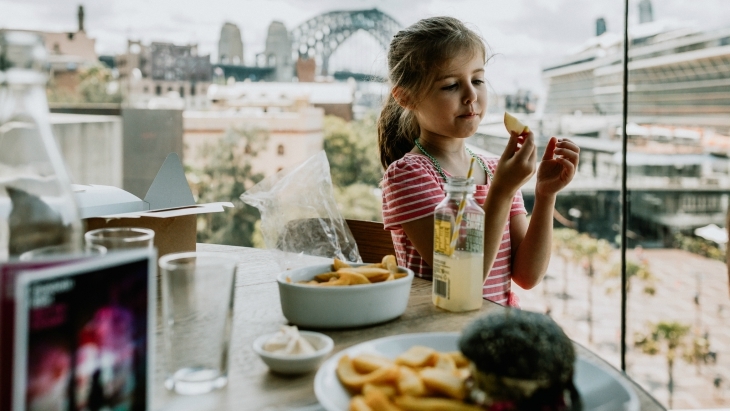 We started our afternoon with a visit to the top floor of the MCA to have lunch in the MCA Café. The MCA Cafe has one of the best views in the city as it overlooks Circular Quay, with views of the Harbour Bridge and (when there isn’t a cruise ship in port) the Sydney Opera House. It’s a really great spot and the kids will delight in people watching, on the weekends there’s no shortage of street performers to spy from above, plus a delicious menu to compliment the view. For the kids there’s the usual items on the menu but by far the best value is the Kids Lunchbox at $14, which features a ham & cheese wrap, fresh fruit, a brownie and a bottle of apple juice. For the adults there’s a good selection to choose from with the house special black bun burger being particularly good. After finishing off our meal with a scoop of ice cream (for the kids) and a delicious iced coffee (for the adults), it was time to head down and check out the exhibition.