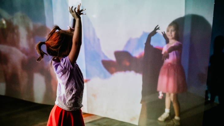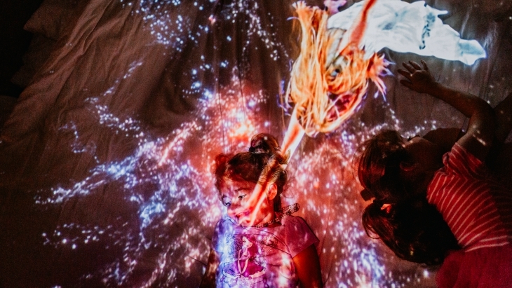 By far the girls' favourite part of the exhibition was the moving projections on the floors, and in one section, on sheer, hanging material. They also loved the room filled with beds that you could lie down on to watch video projections on the roof. With the variety of sounds and colours, we spent a good 2 hours in the exhibition exploring the mesmerising artworks on display.