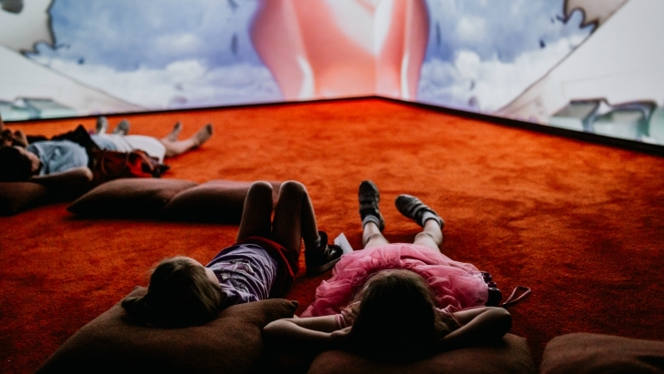Please note there is partial nudity in some of the artworks in this exhibition. Pipilotti Rist’s work celebrates many things that encompass the joy of being alive – water, nature, sky, skin. The human body is part of this, existing and living in the natural world. If you have any concerns, ask an MCA Host - they can tell you more and which works to avoid if you prefer.