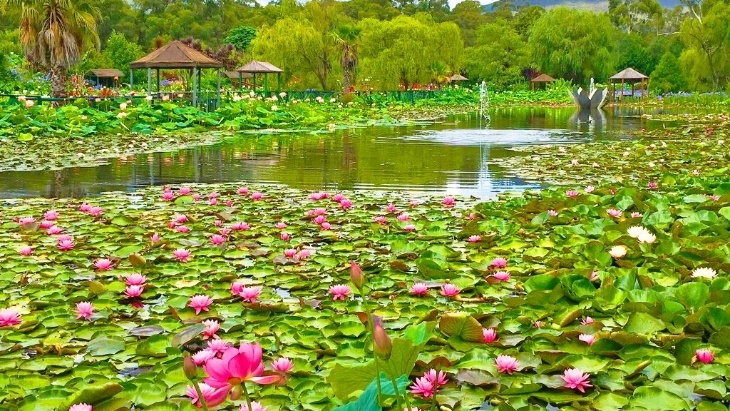 Summer brings the garden's famous Lotus Flower Season, where families can wander past ponds overflowing with vibrant lotus blooms — one of the largest displays of lotus varieties anywhere in Australia.