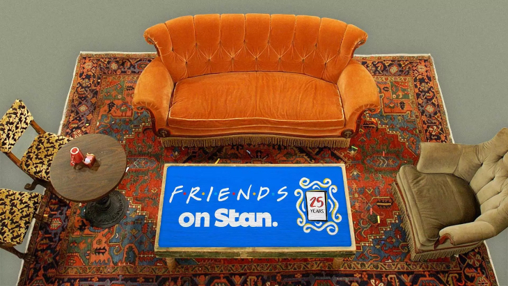 Australian streaming service, Stan, is celebrating Friends' 25th anniversary by hosting a series of pop-up events in shopping centres in Sydney, Melbourne, South Australia & The Goldie throughout September. Along with a special meet-and-greet with The Couch, themed merchandise will be on offer as well as a coffee cart selling coffees, and an acoustic performer busting out serious 90s nostalgia, including Smelly Cat!