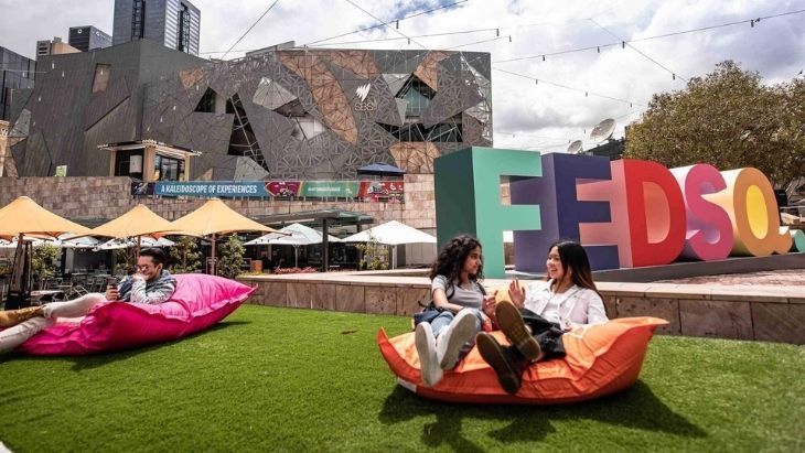 Melbourne's Federation Square is providing no end of reasons to get outside this summer and autumn. Providing comfy seating (we're talking beanbags and colourful deckchairs) and shaded areas, the ability to order food from cafes and restaurants and have it delivered to you in the square plus plenty of astroturf for the kids to run free on, live music on the stage, classic films to watch, giveaways, daily meditation experiences and more, Fed Oasis is a must-do between now and the end of March.