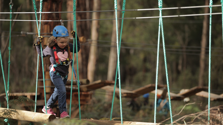 Visit Trees Adventure's exhilerating tree ropes course in Melbourne's Otway Park this July 2018 school holidays.