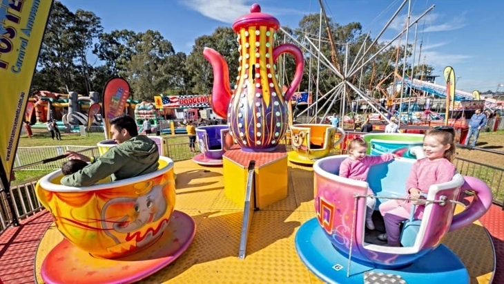 The epic line-up of rides includes Dodgem Cars, Ferris Wheel, Bungy Trampolines, Jumping Castles, Teacups, train rides and the Windjammer.