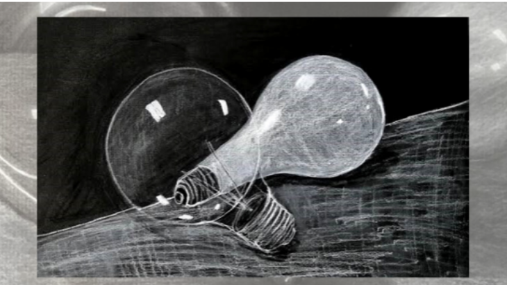 Students will work with a small still-life set up of their own using translucent glass objects found at home – light globes, drinking glass, vase, or bottles.