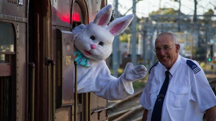 Hop on the train and meet the Easter Bunny this weekend at the NSW Rail Museum!