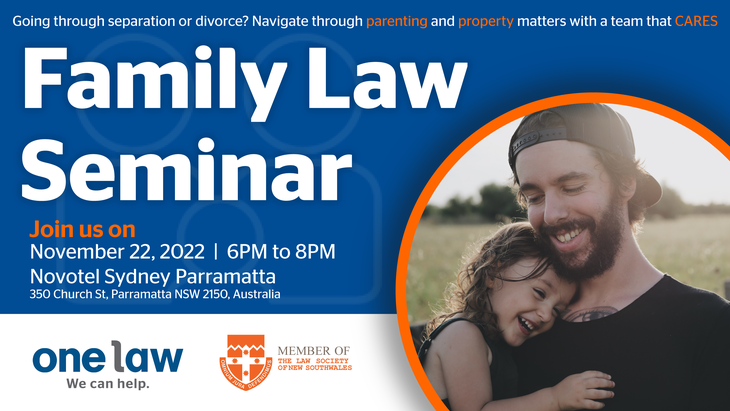 One Law is presenting The Family Law Seminar. This FREE seminar will provide you with valuable information to help you navigate and guide you through this difficult time.