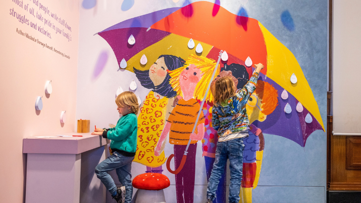 • Activity area: learn to make a zine, draw much-loved book characters, read books from the exhibition (10 reproduced with braille) and enjoy tactile experiences.