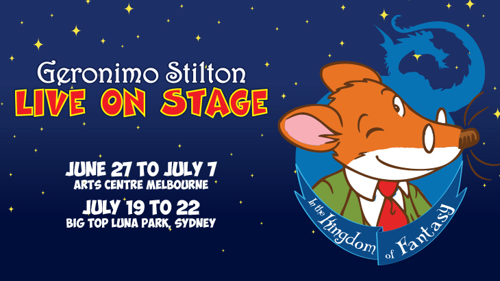 For the first time ever in Australia, the popular children’s book writer Geronimo Stilton comes to life in a 90-minute theatrical and musical adventure.