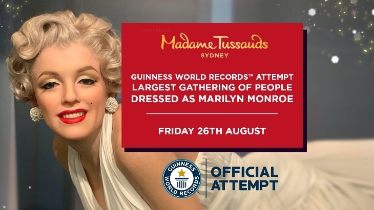 Madame Tussauds Sydney invites you, your friends and family to join them in making history as they take on a GUINNESS WORLD RECORDS™ title as the largest gathering of people dressed as Marilyn Monroe on Friday 26th August – PLUS, everyone that dresses up will receive FREE entry into the Madame Tussauds Sydney attraction!