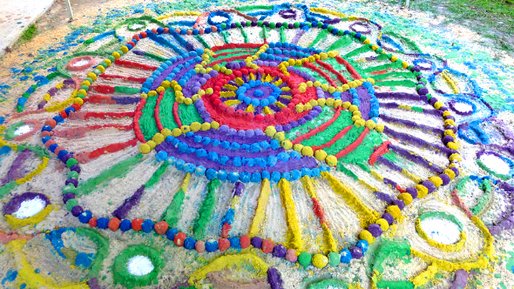 Image (top): Sand painting created by Walangari Karntawarrra with pupils at Monte Sant' Angelo Mercy College.