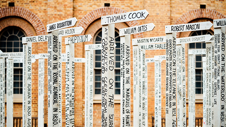 Fiona Hall's Who goes here? is an educational installation for the whole family that was inspired by the stories and identities of the many people who lived and worked at the Hyde Park Barracks from 1819 to 1887, including convicts, immigrants and asylum inmates and the officials who controlled their lives.