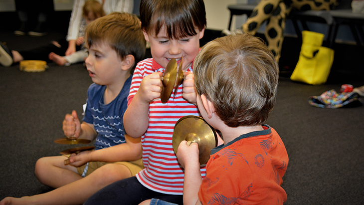 Our youngest participants will explore the musical concepts of pitch, beat, and tempo through creative play and a range of unconscious learning activities. Listening and motor skills will be engaged through echo singing, movement, imitation,playing percussion instruments, and musical games.