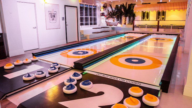 Housed in a winter wonderland-themed venue at the Entertainment Quarter, Sliders Curling Bar us equipped with a number of curling rinks that will allow two teams to compete on each lane. Players slide 'stones' towards the targets and score the highest points the closer they get to the centre.