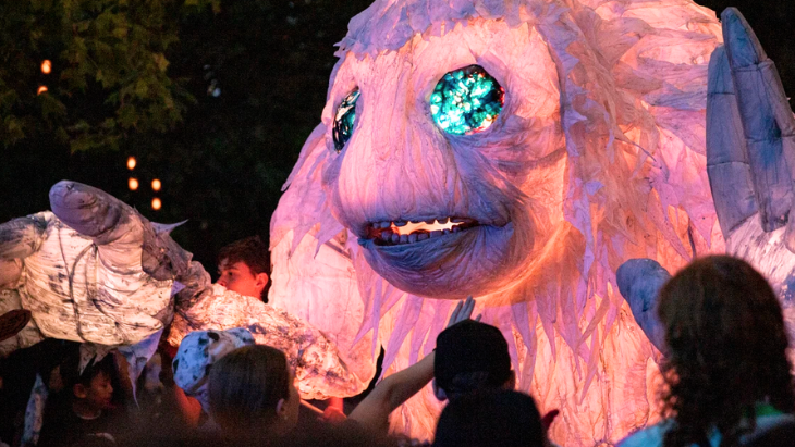 At the heart of this enchanting experience is Fauna—a gentle, 4-metre-tall inflatable puppet born from the hidden, ancient threads of mycelium.