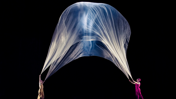 At Air Play, fabrics dance in the wind, balloons have a mind of their own, confetti turns into the stars of the night sky, and an enormous canopy of hovering silk changes the siblings’ lives forever.