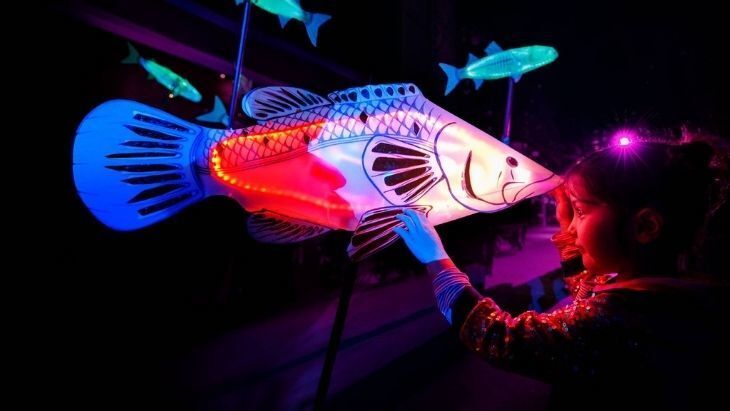 Audience members will meet a lively cast of aquatic creatures including humpback whales, grey nurse and bull sharks, stingrays, musical mulletfish, leafy sea dragons and bioluminescent jellyfish.