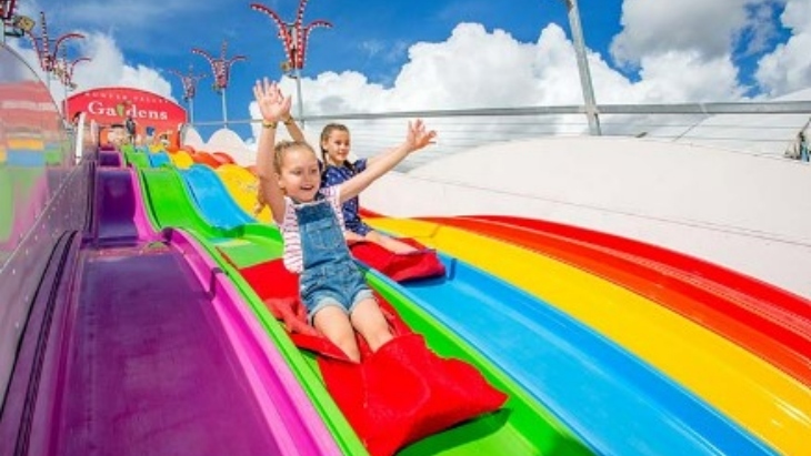 - Grab a mat and slide away. This slide is a massive 35 metres long, 12 metres high and a whole lot of fun!