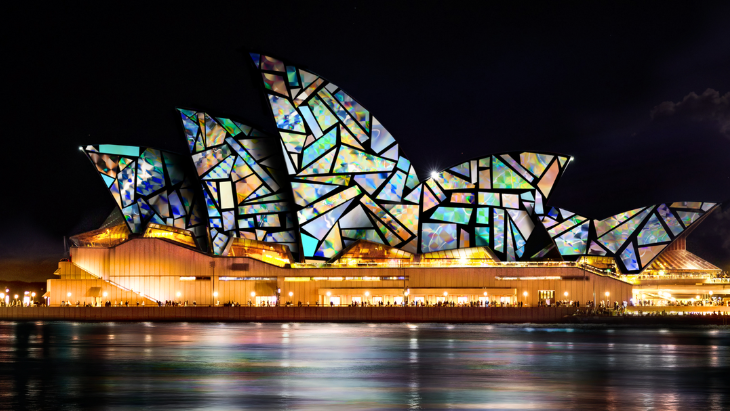 • See the Sydney Opera House sails glow with Kiss of Light by David McDiarmid, while King Dingo by Vincent Namatjira reimagines the MCA façade.