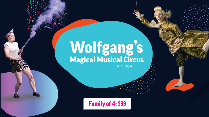 Designed to amaze people from the age of three and upwards, Wolfgang’s Magical Musical Circus reinvents the composer’s magical music in a skilful and illuminating show featuring Circa’s dexterous daredevil artists and a live accordionist. Watch as the notes are physically lifted off the page as performers bring the renowned compositions to life amidst a storm of powder, tumbles and crashes, all under the eccentric swirl of the conductor’s baton.